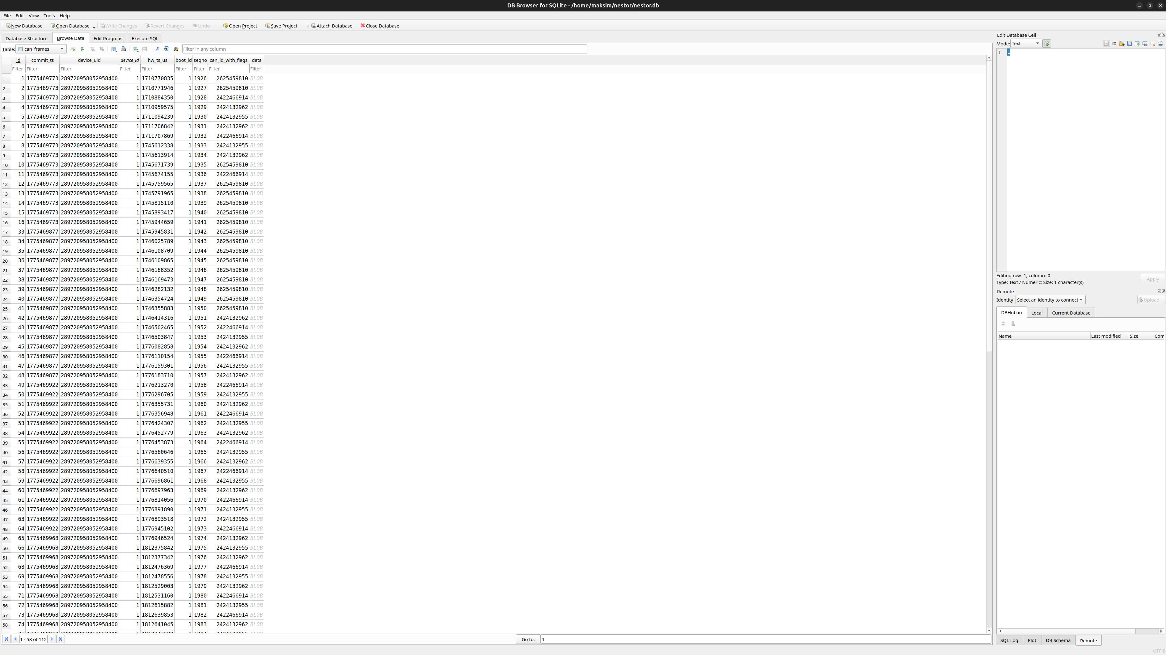 Attached is a SQLite database which holds the CAN frames which were recorded while a FluxGrip was connected to a CAN network and turned on/off 4 times.