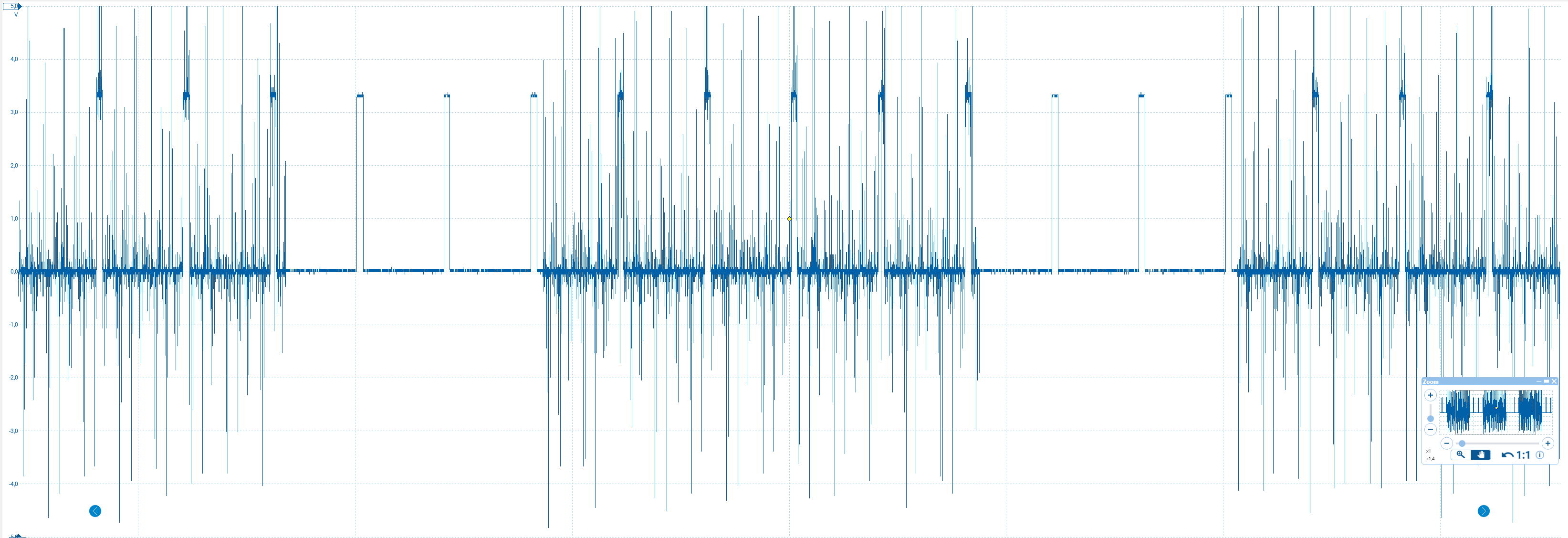 I am trying to set up my Tyto Flight Stand 15 in order to test Motors and ESCs. While using the Tyto PWM Output for the Myxa A2Z, the Motor just stuttered and did not move at all. The ESC and the Motor pair seemed to work fine using an external servo controller. So I connected my oscilloscope to the PWM output of the Tyto and got a lot of artefacts along with the PWM signal. I cannot exactly pin point the source of the noise. The noise seems to be a ~325Hz sine waveform and has a fixed time interval between two waves. Could it be a grounding or coupling issue?