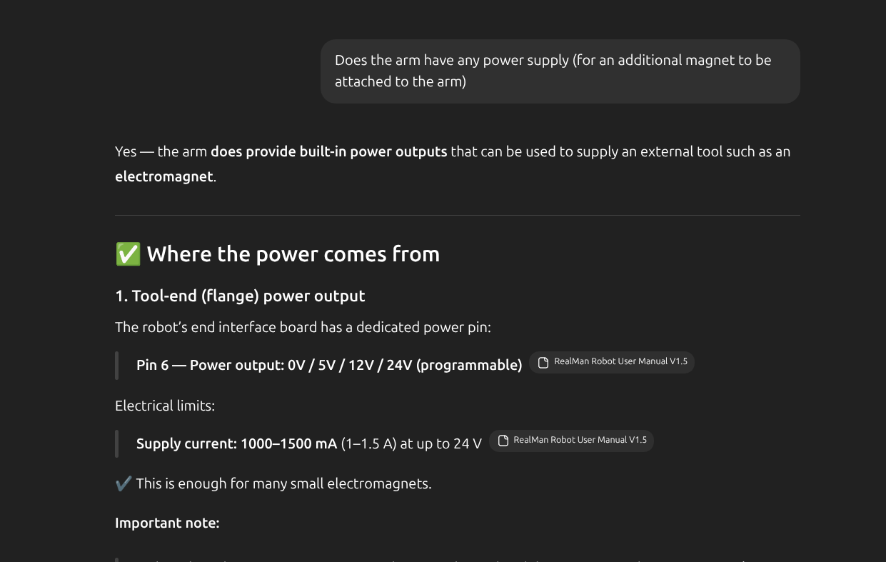 We’re planning to use the FluxGrip FG40 magnetic gripper on a RealMan collaborative arm through the end-effector interface . The Interface (page 59) provides: